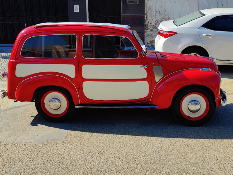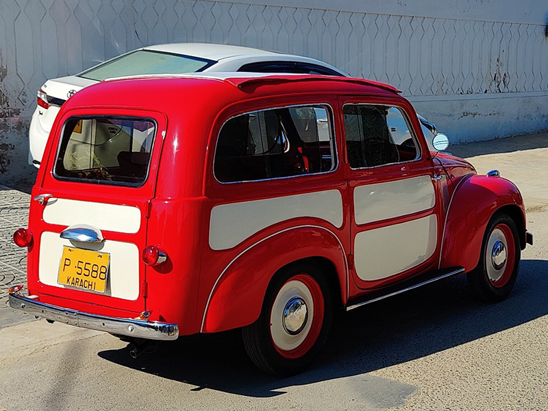It’s a 1955 Fiat 500 c Station Wagon. Fiat introduced the 500C which brought with it wider frontal treatment. This design would continue through 1954. In addition to coupe and cabriolet (sliding sunroof) body styles, the 500 line included an estate wagon in wood-trimmed Giardiniera, and all-steel Belvedere guises. This 1953 Fiat 500C Belvedere is an original right-hand-drive, export model. Owner Name Mohsin Ali